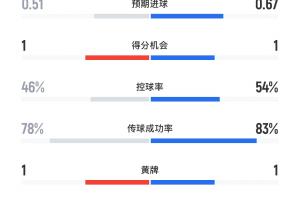 阿森纳半场10射2正,巴黎5射3正,预期进球阿森纳0.67、巴黎0.51。